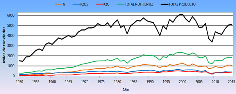 Durante la última campaña agrícola 2015/16 (julio 2015 – junio 2016), las ventas de fertilizantes minerales se han situado en 4,76 millones de toneladas de producto.